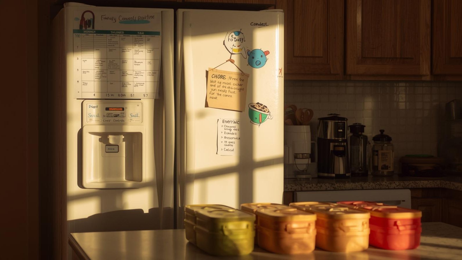 Visual schedule + color-coded family calendar.